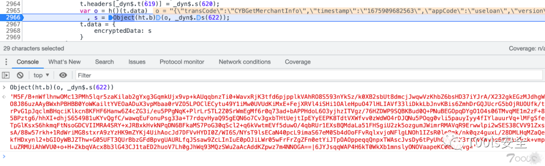可以看到这个函数作用域下的函数加密方法为 Object(ht.b), 第一个参数为待加密的字符串,第二个参数为一个常量。我们在此处打一个debug断点,然后触发到这里