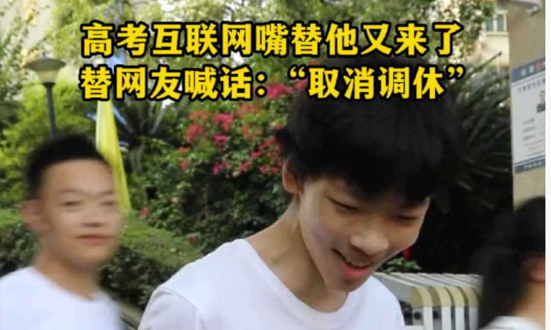 昨天是高考第二天。一名男生冲出考场后面对媒体采访,被问“高考结束,你最想做什么时”,替广大网友大声喊话:取消调休取消调休取消调休。