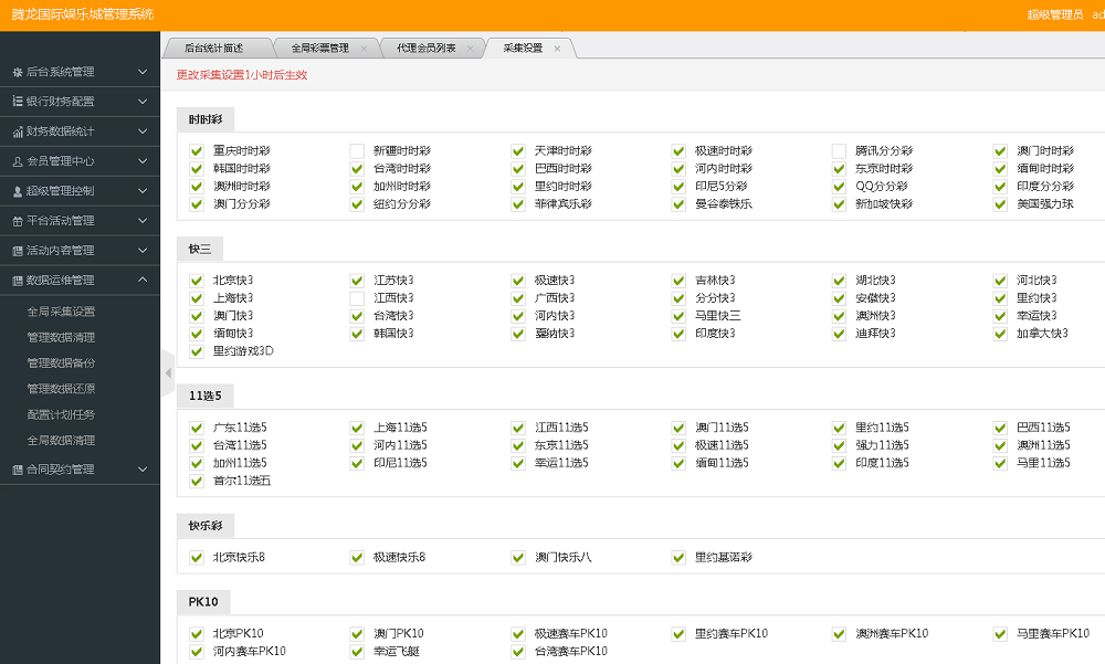 全部彩种有七十多个,系统彩有一大半,系统彩可设置概率控杀
