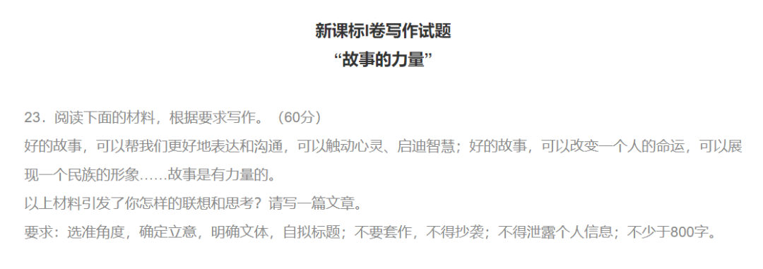 使用的是这次全国新高考 I 卷,题目是 “ 故事的力量 ” 。