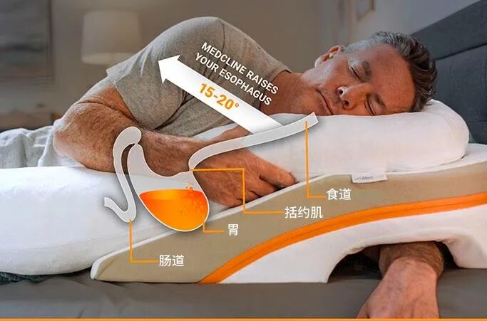 此时的确建议睡眠时抬高上半身来对抗反流,要通过辅助枕抬高整个上半身,或者垫高床头,而不是用高枕头。