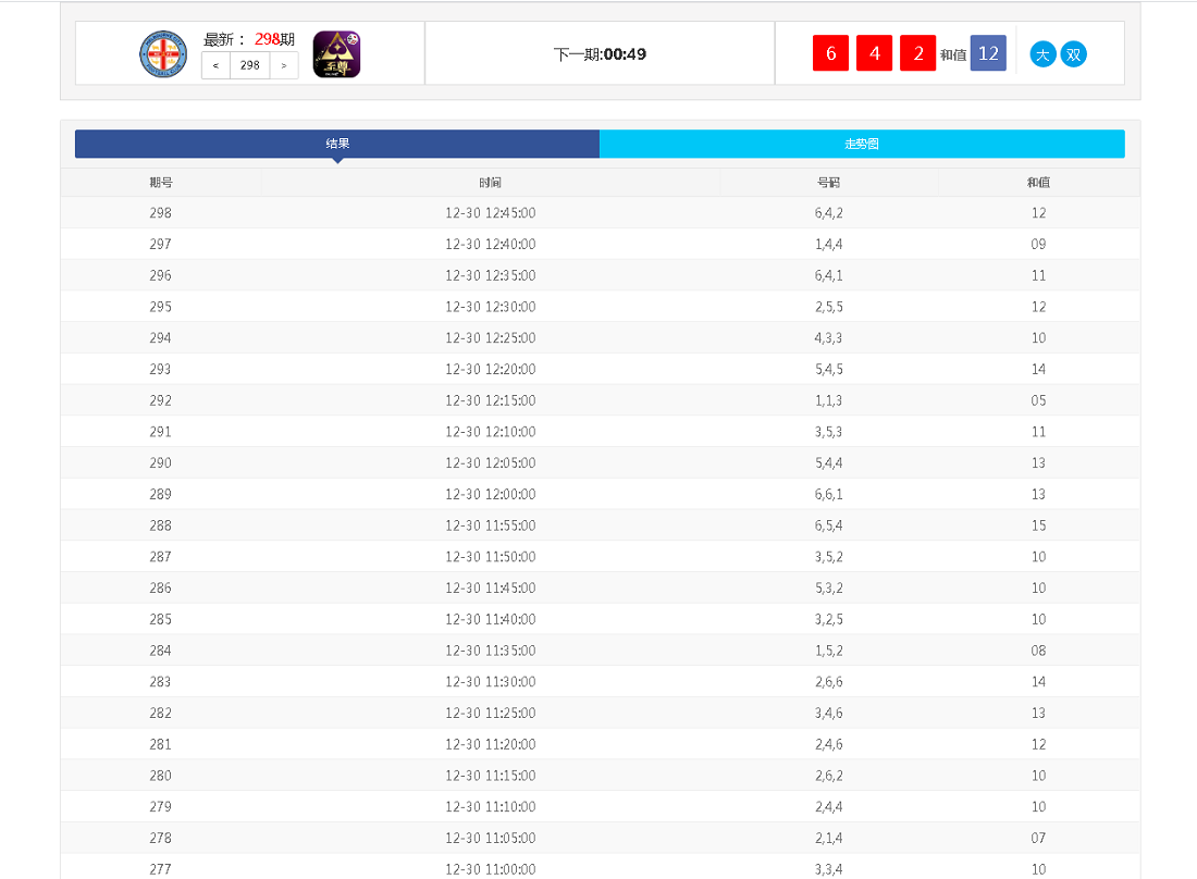 完整版快3开奖走势图网-后台可自行预设结果,可修改开奖时间,可修改走势图结果