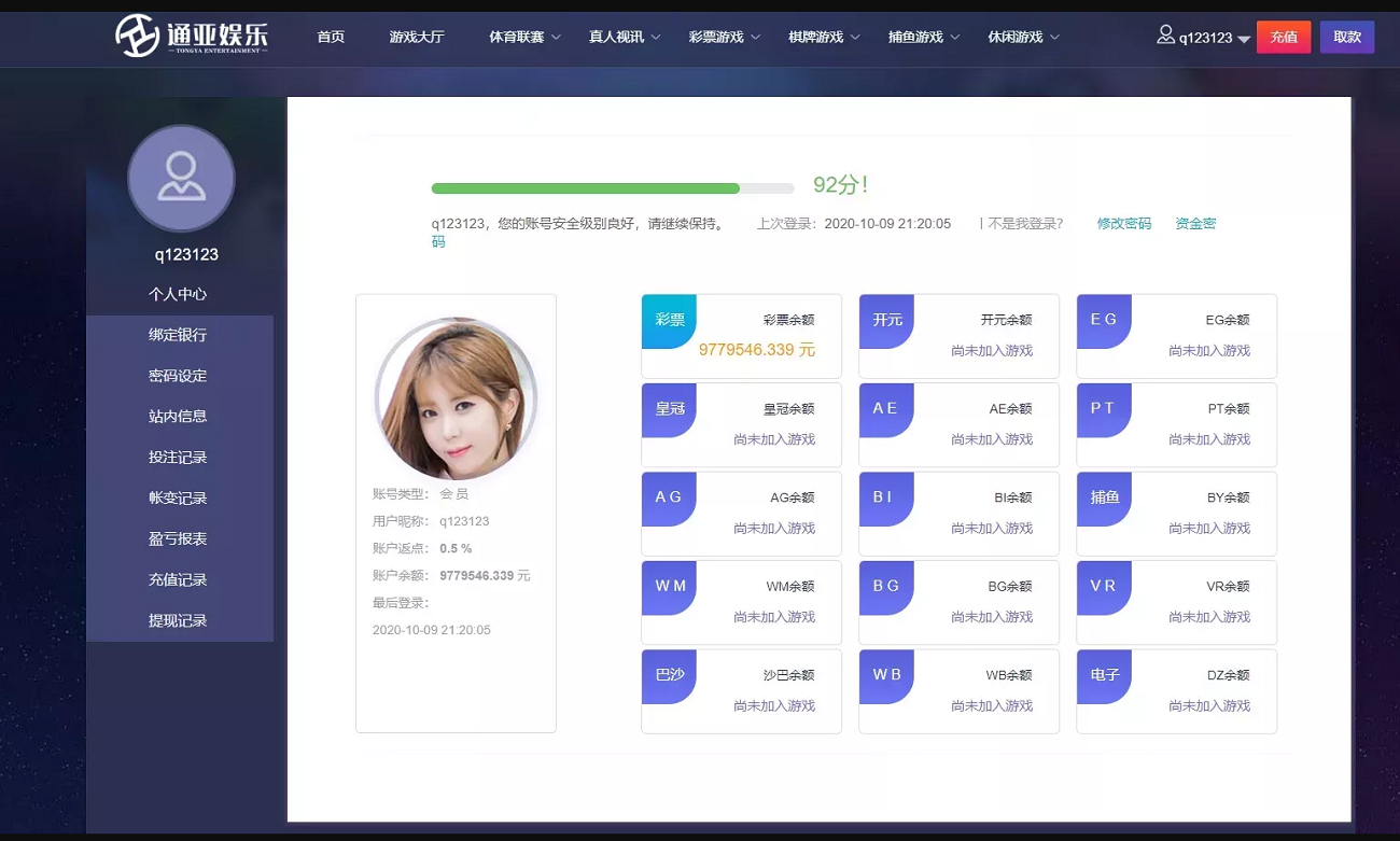 这套东西不是大富,也不是通亚的版本,天恒系统,拿了通亚的皮,运营起来不比大富差。