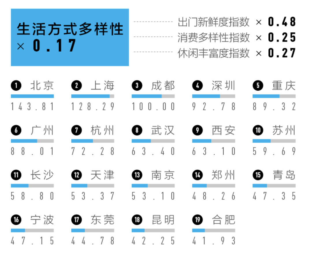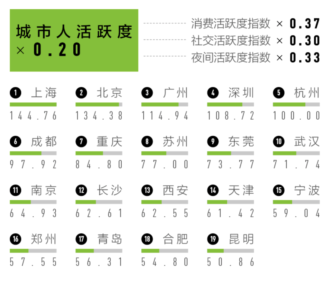 在枢纽性排名中,北京反超上海,成都反超广州,深圳则排至第七位,显示深圳虽然经济很强,但在城市综合功能上有点“偏科”,枢纽性不太理想,低于重庆、西安等大区中心城市。城市人活跃度包含消费活跃度、社交活跃度、夜间活跃度等三个指标,上海、北京、广州、深圳排名前四,应该没啥争议。但杭州在这项排名上超过成都,有点不太理解。毕竟,论消费活力、社交热情、夜生活丰富度,我感觉成都是更强的。快来给【财经策论】点个星标,不错过每一篇热点好文!从下方点开公众号👇,点击右上角“…”再点击“设为星标”即可