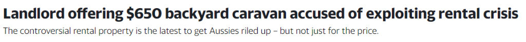 昆州一辆正在出租的大篷车引起了租客的不满,他们指责“贪婪”的房东在住房危机期间剥削处于弱势地位且正在急寻住处的澳人。