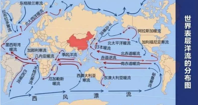 据全球洋流分布图,日本暖流会将核污水带到中国沿岸,此后洋流会将核废物带到北美洲和俄罗斯。
