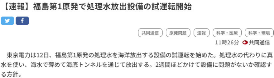综合日本共同社、日本广播协会电视台等媒体报道,核污染水排海相关设备目前基本完工,东京电力公司当天上午开始了设备的试运行。