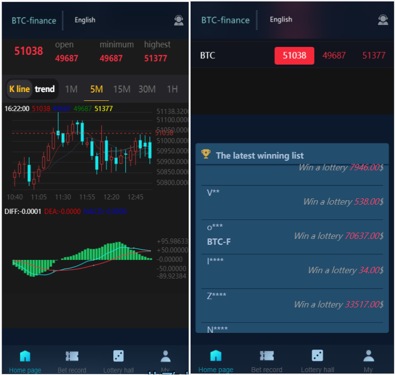 改成了K线走势图的样式,相当于股票平台,虚拟币交易类型一样,非常牛批!