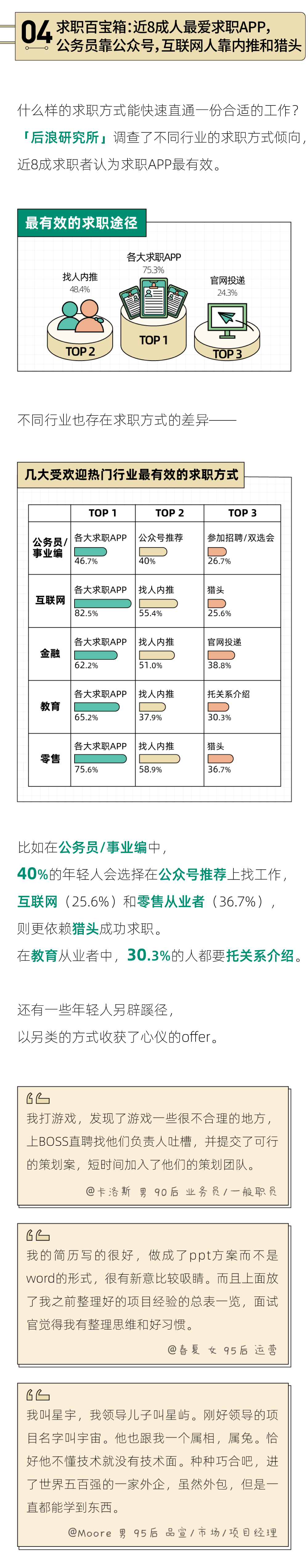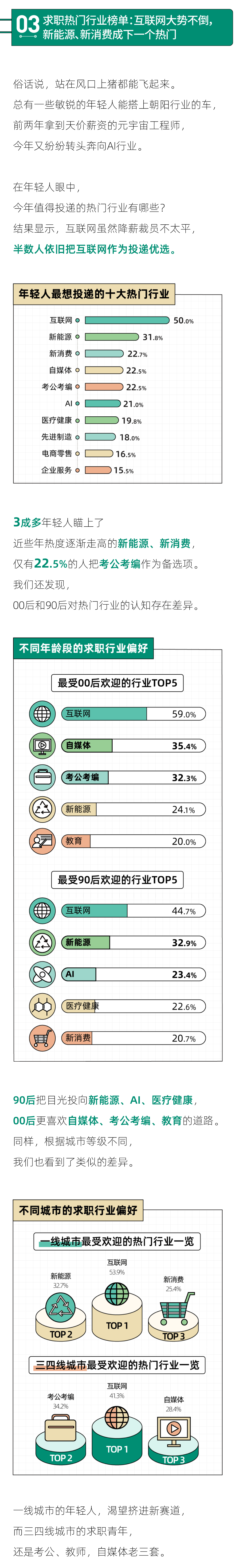 但其实,求职之路的不确定因素太多,有太多的主客观变量,需要长期的稳定探索和耐心的等待。它可能没那么艰难,但一定需要时间的沉淀。阅读过这份报告后,我们希望正在求职的你也能放下焦虑,不要怀疑自己,也许一个绝好的工作机会明天就会送上门。祝读的工作!