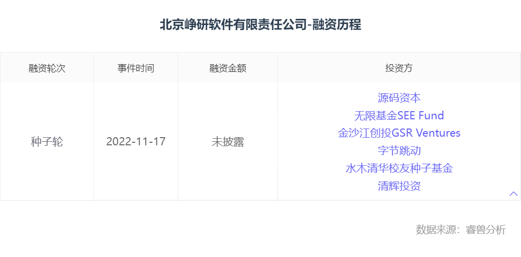 李严峰在2022年10月创办峥研软件,同年11月完成种子轮融资,投资方囊括了硬科技、工业软件领域的活跃玩家,包括源码资本、清辉投资、量子跃动、无限基金SEE Fund、水木清华校友种子基金、金沙江创投。
