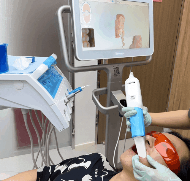 治疗椅上一躺 哈哈哈,等待个几分钟。就能在屏幕上直观看到你的3D牙齿情况。之前,我记得还是用橡皮泥材质的模具让用户使劲咬住形成倒模,长时间张嘴又累又难受,塑料的异味也难顶!