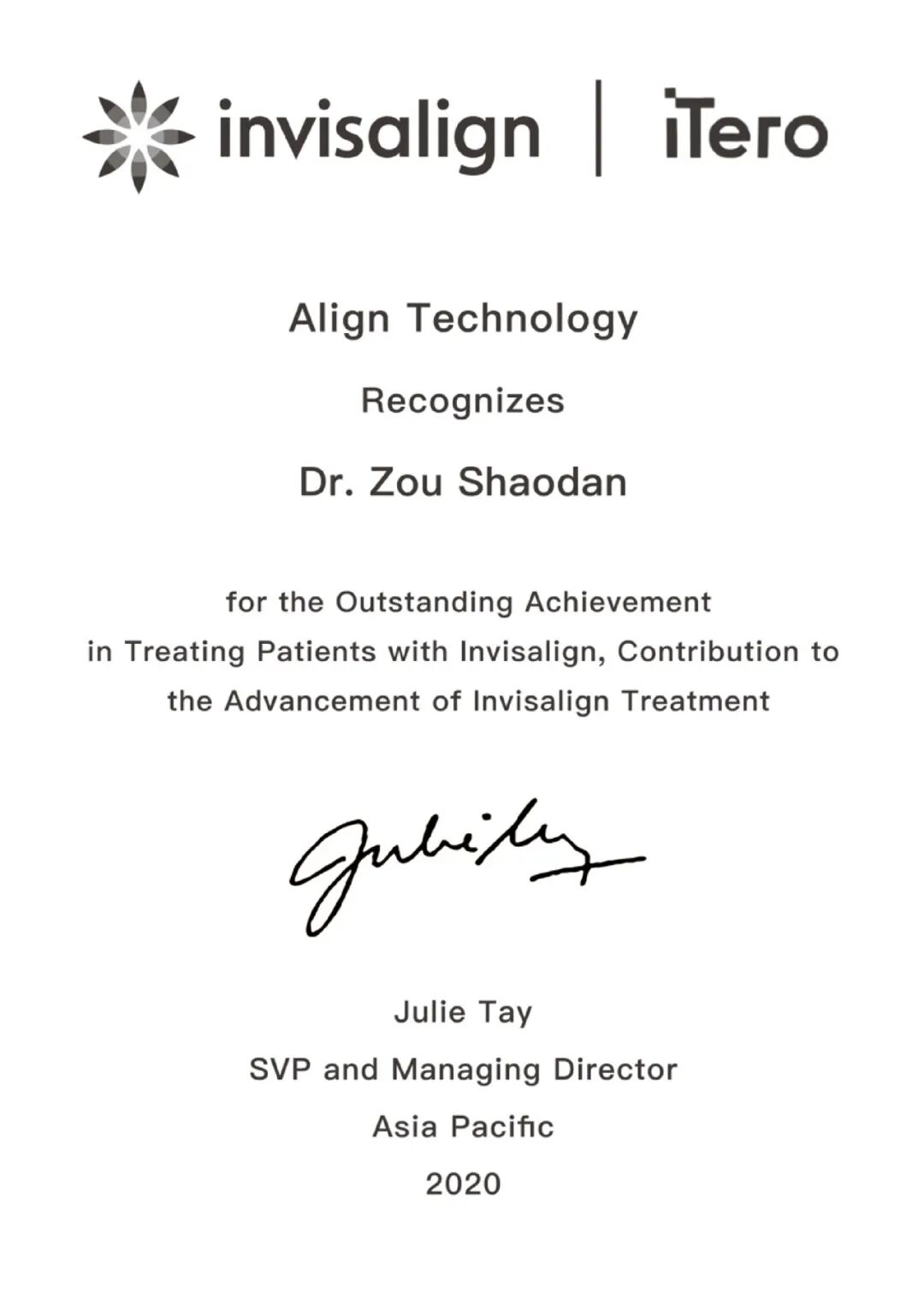 隐适美医生授权证书