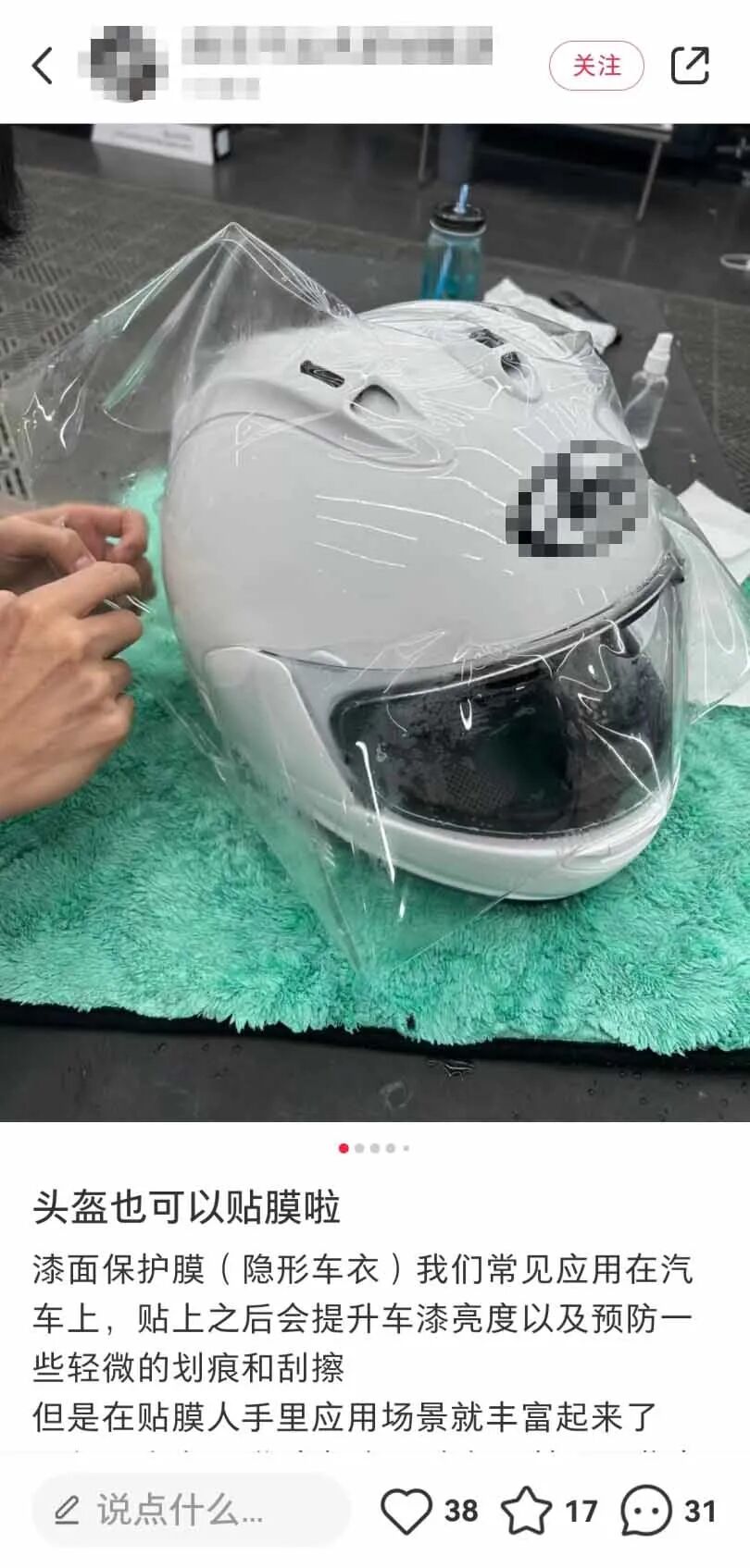 笔记本你见过,你见过给摩托车头盔贴膜的吗?