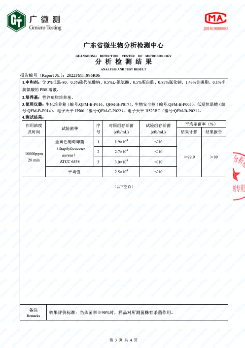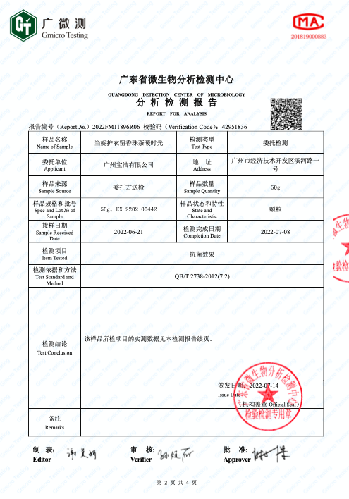 *抗菌效果检测依据和方法:QB/T 2738-2012(7.2)。