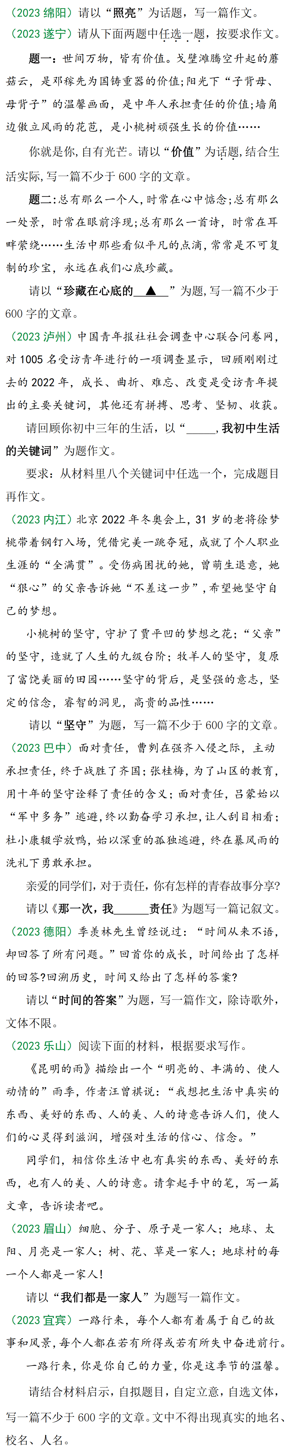 我们第一时间搜集汇总2023年已考地市的中考作文真题,分析各地作文题考查方向,助力同学们更好备考!