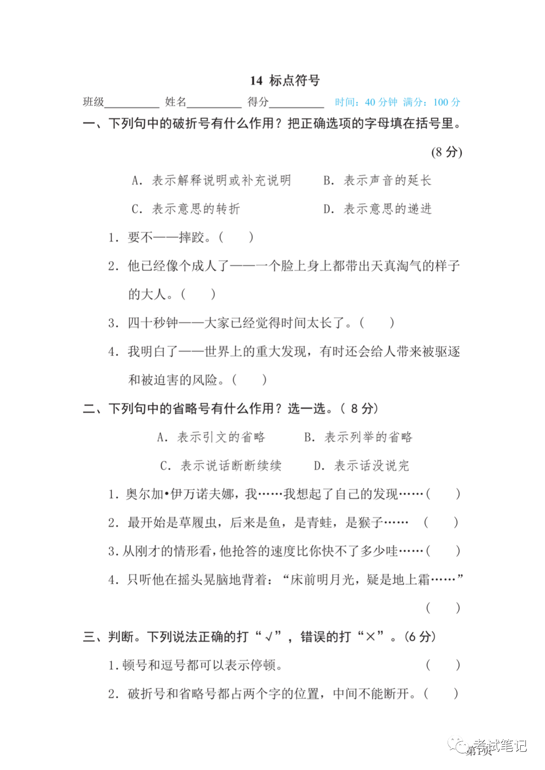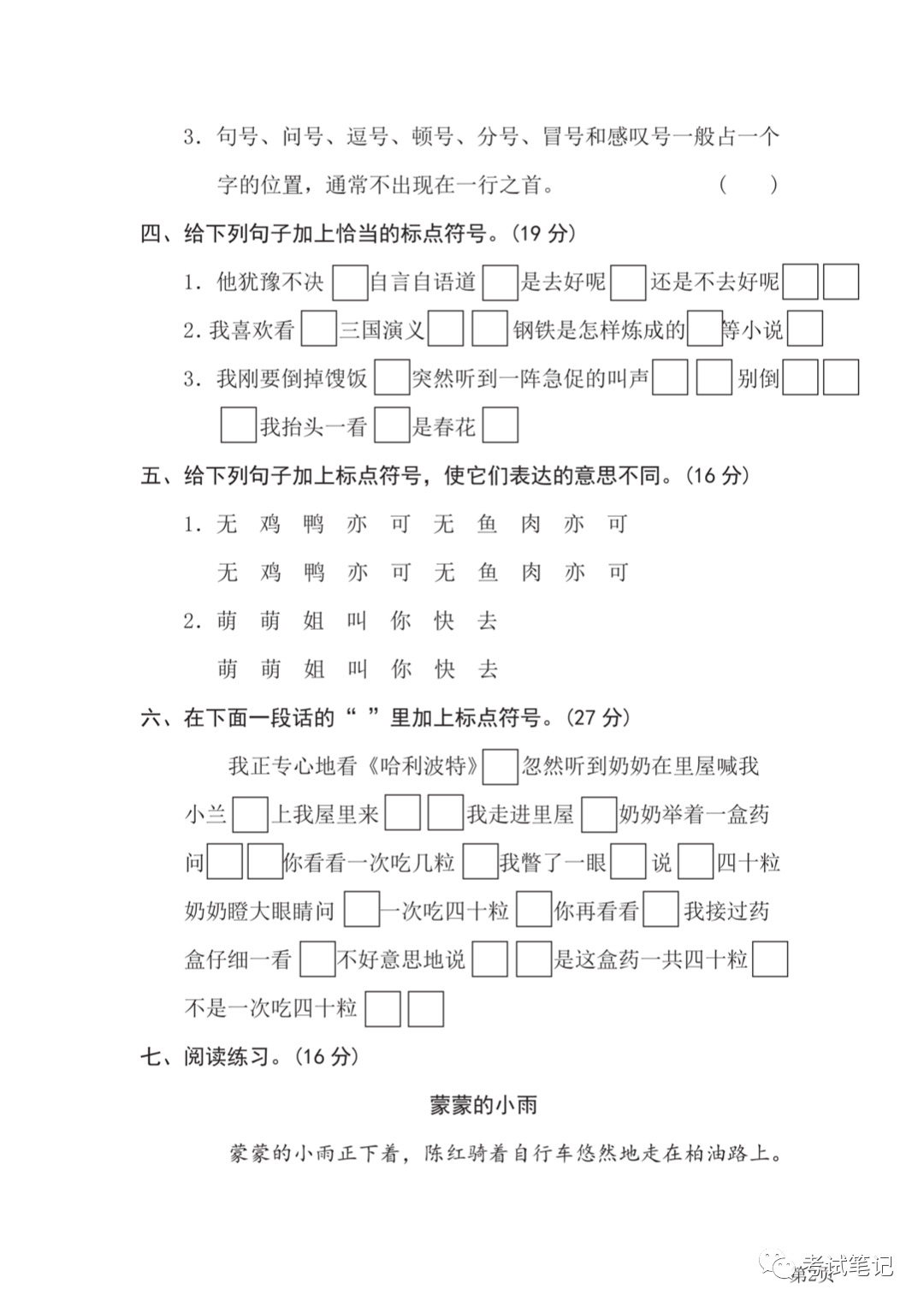五年级语文:标点符号专项训练,不会用标点符号的可以拿着练练,本套习题有答案,可以自查对错!