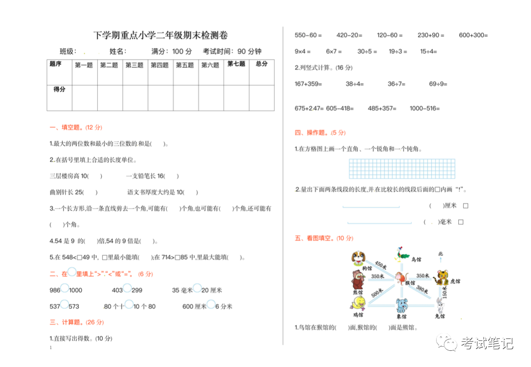 二年级数学(苏教版):期末检测卷两套,给孩子收藏!