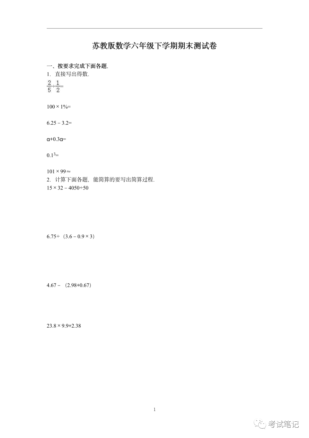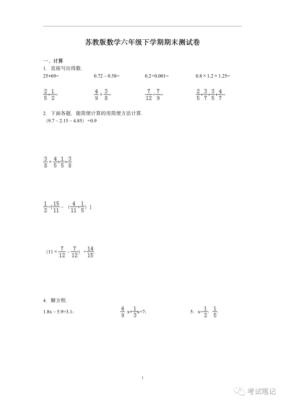 六年级数学(苏教版):期末检测卷两套,给孩子收藏!