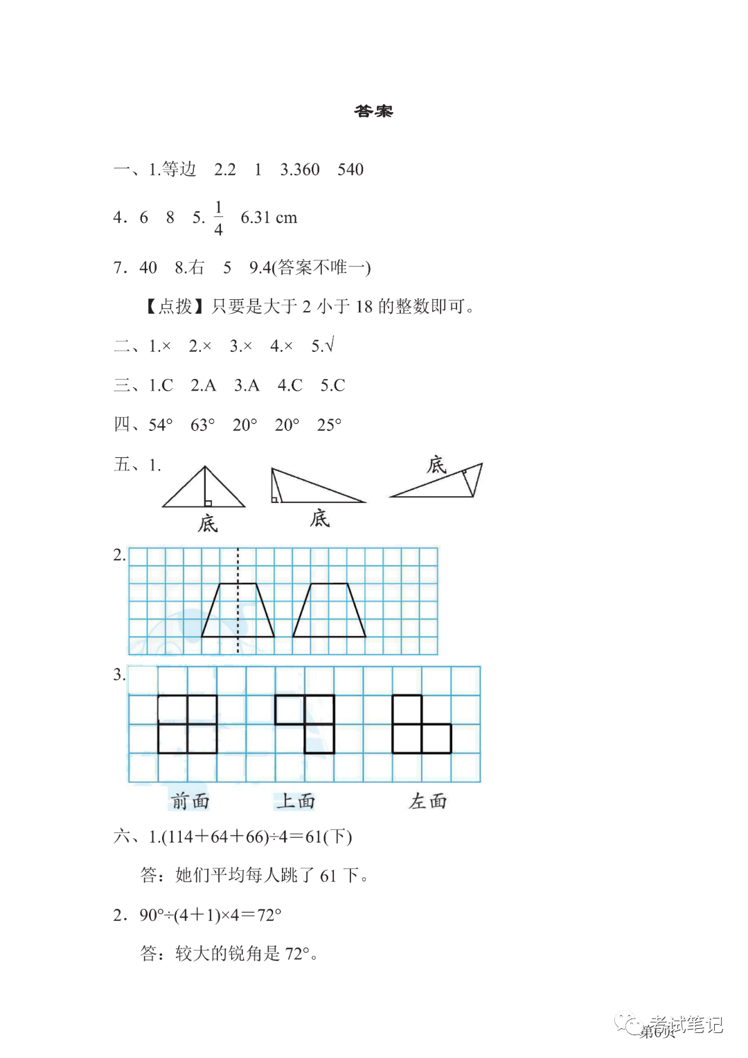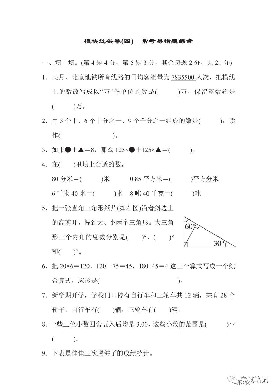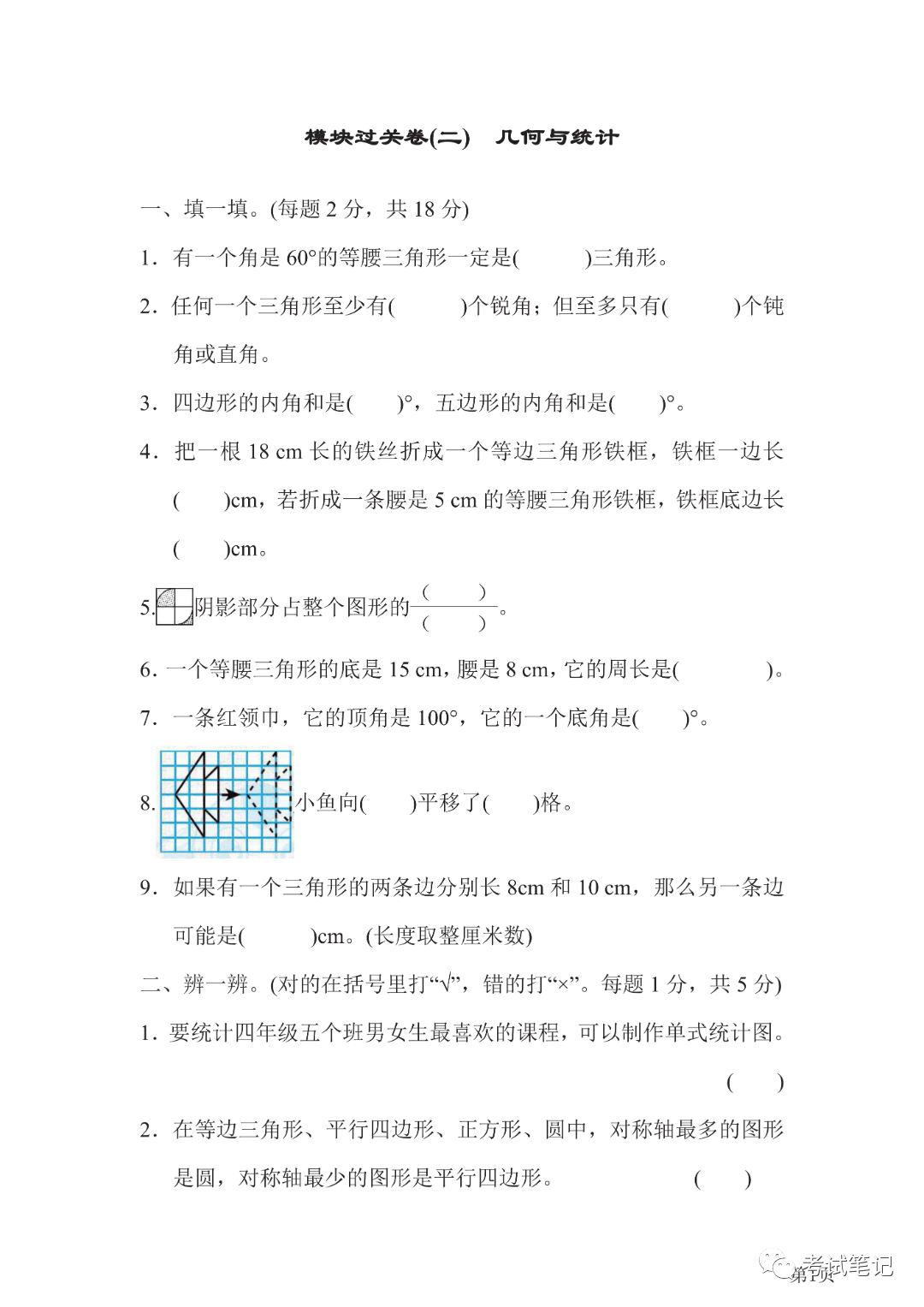 四年级数学下册:模块过关卷2套,几何与统计、常考易错点综合,期末复习用!