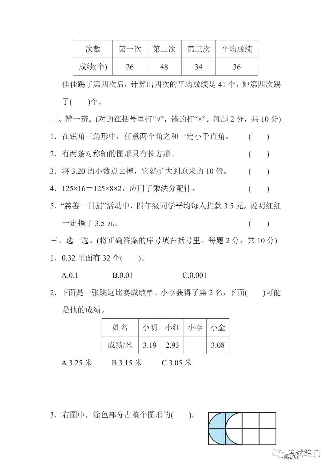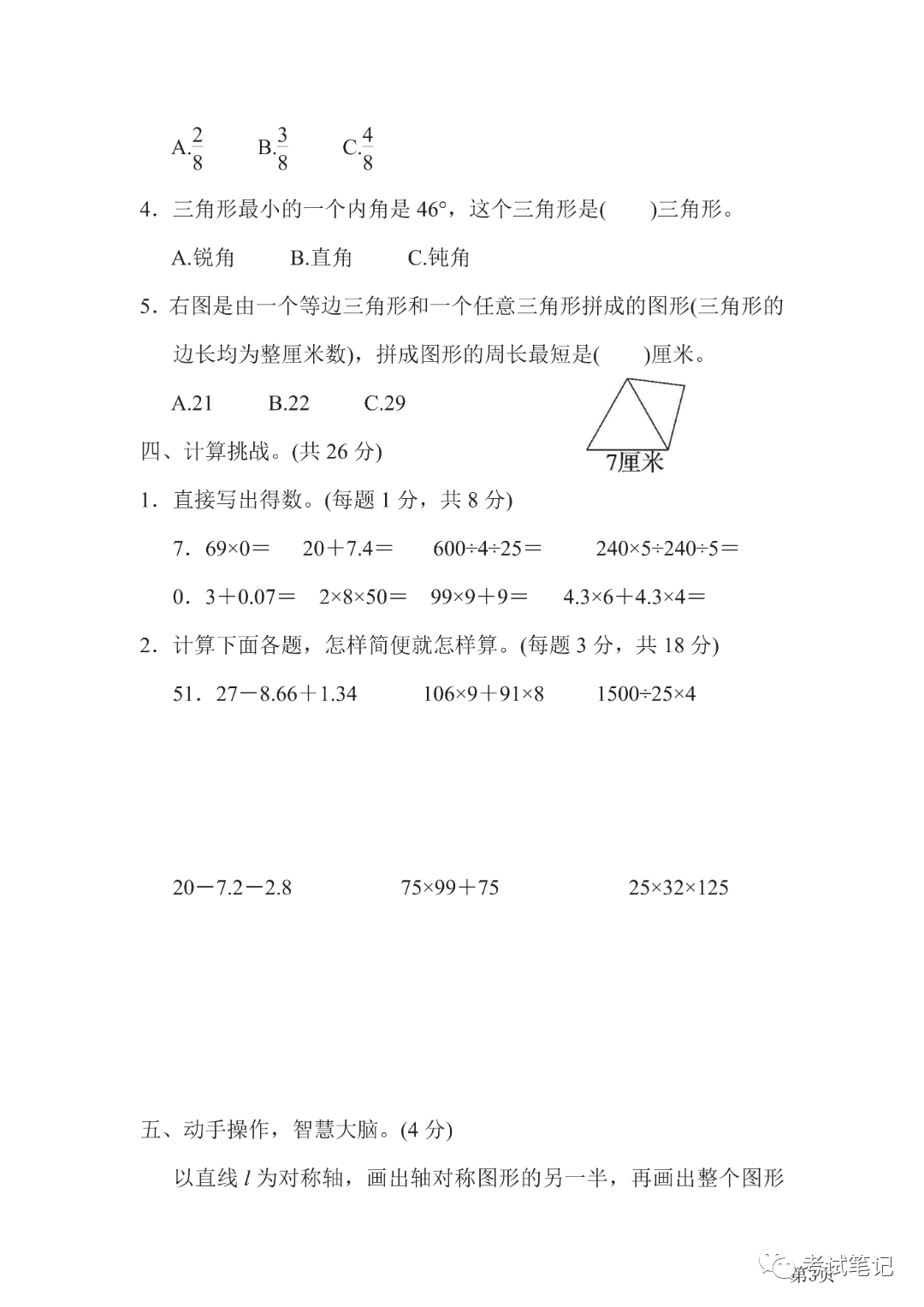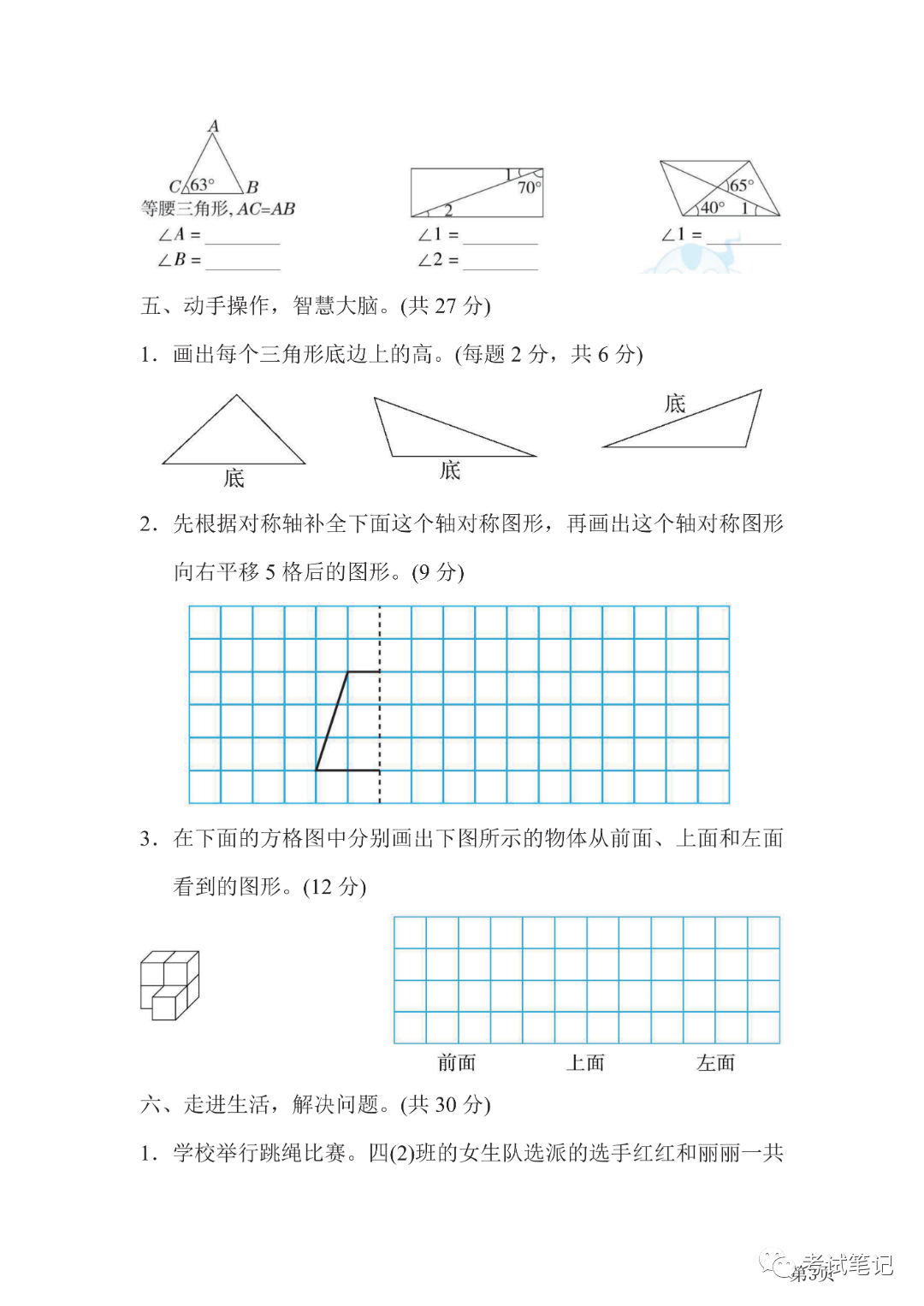 四年级数学下册:模块过关卷2套,几何与统计、常考易错点综合,期末复习用!