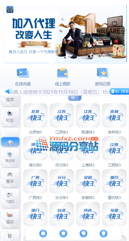 全新手机版界面,实在是太好看了,内含差不多一百个彩票游戏,多个地方时时彩和快三彩种;