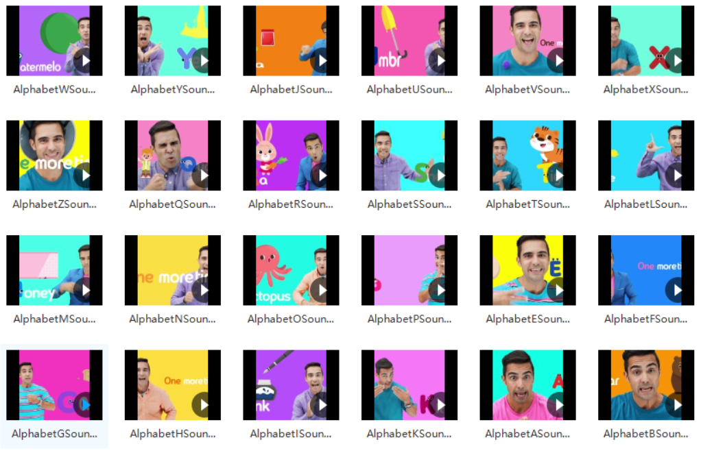 这套视频包含26个字母动画儿歌和62个字母组合动画儿歌!画质高清、风格幽默,节奏非常洗脑。加上外教老师搞怪夸张的表情,让孩子轻松学会自然拼读!