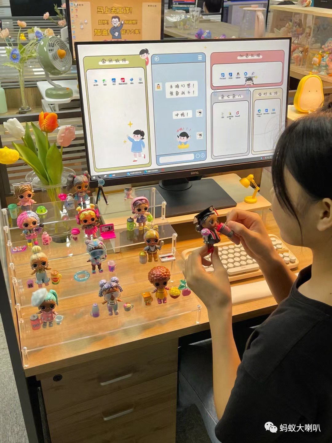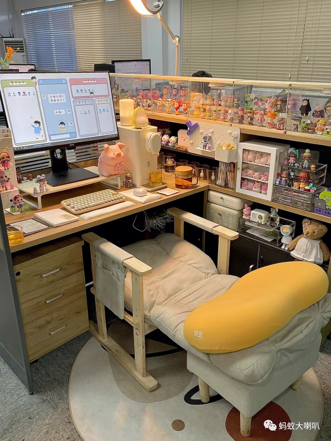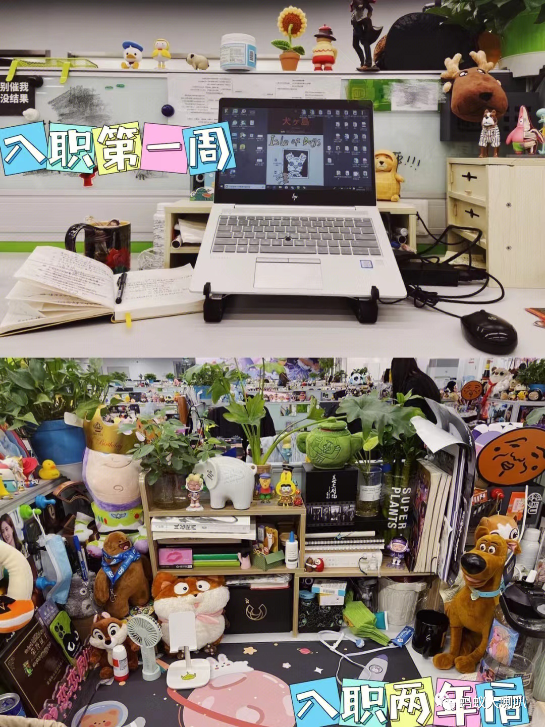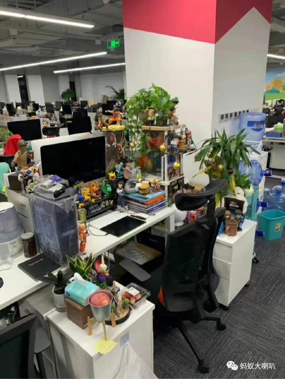 小编我:趁着中午吃饭,“偷拍”公司同事工位,第一张是我的...,有财神那张是财务的,嘿嘿。
