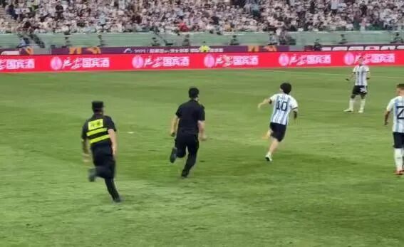 “平安北京朝阳”微信公众号16日晚发布通报:6月15日晚,在工体举办的一场足球比赛中,一位球迷从看台跳下冲入球场,拥抱自己喜爱的球员,并在球场中奔跑,后被工作人员带离,这位球迷的举动导致比赛一度中断。