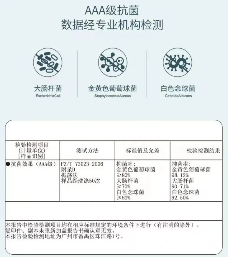 经过多次洗涤之后,抑菌抗菌率依然非常高!