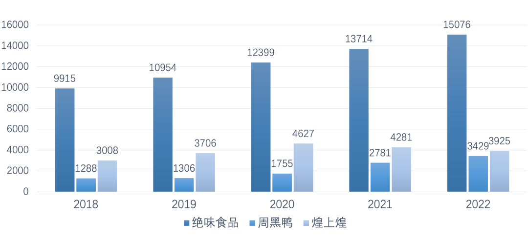 净利下滑,三巨头“鸭力山大”业内普遍的感知是,卤味行业陷入困境的主要原因在于疫情。经济下行,人们对“非刚需”的可选休闲食品消费的需求降低。祸不单行,“鸭货”的成本还在增加。公开资料显示,自2022年下半年起,鸭价在饲料涨价、供不应求等因素的作用下持续上涨。在今年5月的业绩说明会上,绝味食品董事长、总经理戴文军也表示,往年鸭脖的平均成本价是4-5元/斤,今年3月最高涨到了14元/斤。为了缓解压力,卤味巨头们祭出“涨价”这一保命手段。但是周黑鸭的产品价格本就在连年提高。此前有媒体统计,2012年,周黑鸭的鸭脖售价为45元/斤,2022年已经涨到了61元/斤。多重压力下,对价格十分谨慎的绝味食品也开始提价。2022年初,绝味将部分产品提价5%,同年7月,绝味再次对鸭掌、鱿鱼等部分品类调价,平均提价幅度达到7%至10%。36氪走访线下门店发现,周黑鸭300g的锁鲜装鸭脖,售价为35元,相当于58.3元/斤。绝味250g的招牌鸭脖售价27元,相当于54元/斤,价格已与周黑鸭接近。从结果看,简单的提价策略并不被消费者买账。至少从2022年的财报看,三巨头出现了集体性的净利润下滑,绝味食品更是交出了自2014年以来最差的成绩单。在上一年度,绝味食品的总营收达到66.23亿元,营收增速较2021年大幅放缓。净利润方面,绝味同比下跌76.29%至2.34亿元;扣除非经常性损益后,净利润达到2.57亿元,也同比下跌了64.25%。赚钱变难的不只是绝味。缩减门店后,煌上煌2022年的营收、净利润也出现了大幅度的同比下滑,其同期归属上市公司股东的净利润仅为3081.62万元。上一年度,周黑鸭营收达到23.43亿元,同比下跌18.35%;净利润仅2528.3万元,跌幅为92.62%。今年1月,更有市场信息传出,周黑鸭预计2023年业绩利润指引为1.5亿至2亿元。受此消息影响,周黑鸭的市值仅一日就蒸发了32亿港元。该消息还称,周黑鸭的品牌加盟模式和自营模式或出现问题,只不过被疫情掩盖。