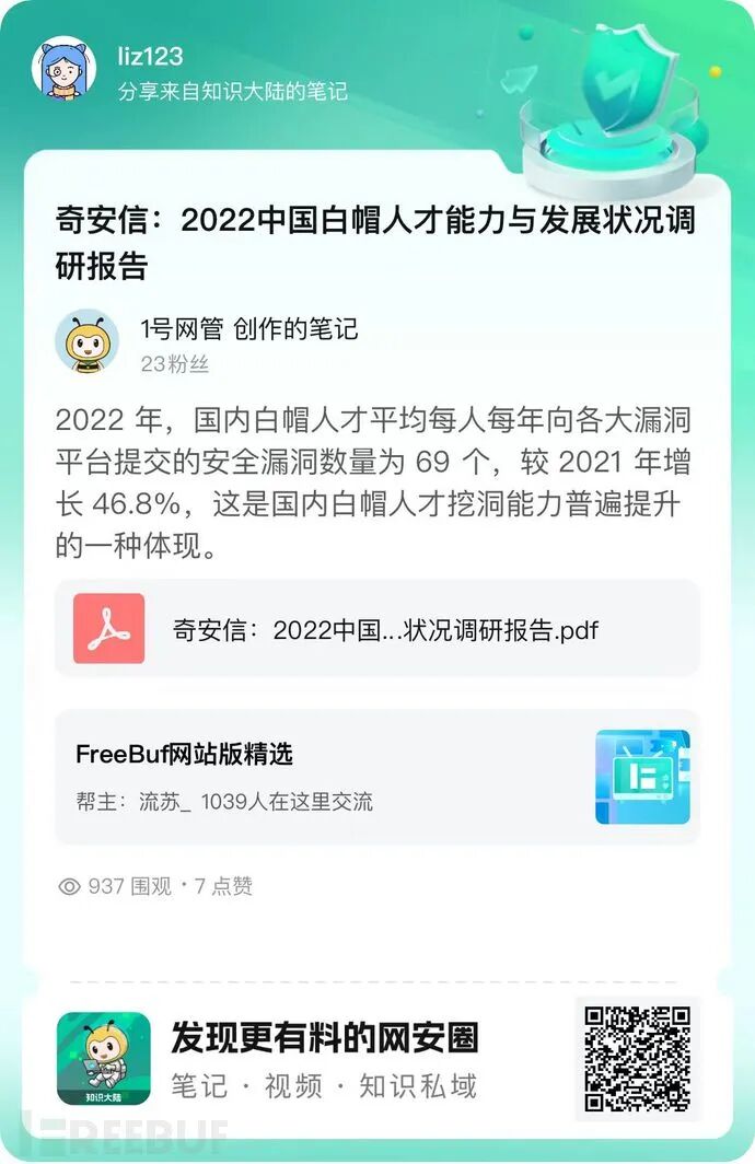 各位读者周末好,以下是本周「FreeBuf知识大陆一周优质资源推荐」,我们精选了本周知识大陆公开发布的10条优质资源,让我们一起看看吧。