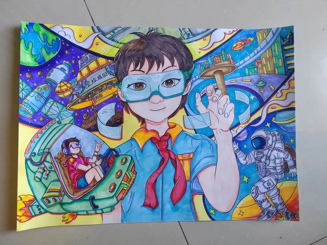 “戴上智能眼镜,我看到自己开着飞行器,在太空中来回穿梭。瞧,房子可以悬浮着,人们可以穿着智能航天服自由漫步,太空垃圾回收站不但能回收各类垃圾,还能从中提取金属、燃料呢!这些东西一部分可以为飞行器提供燃料,另一部分可以带回地球重新利用。”