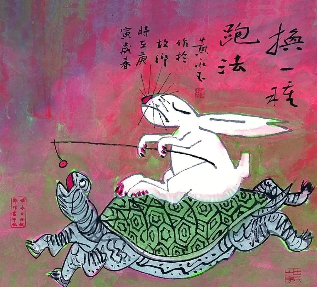 这样有童心、童趣又随性的人画出来的画,画风自然也是跟别的画家不一样的。作家萧乾形容黄永玉的画:这浮漾在他粗犷的线条间的正是童稚、喜悦和奔放。黄永玉做的一桩桩、一件件事情,总是出其不意,酷拽到爆。一生放荡不羁爱自由,不被他人左右的黄永玉,着实让人羡慕。但懂他的人,都会欣赏这只小蓝兔睿智、洒脱、我命由我不由天的形象,这就是艺术的魅力。赠送2023兔年新年贺卡+小全张+兔年首日封