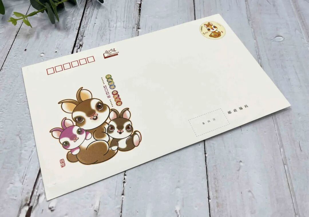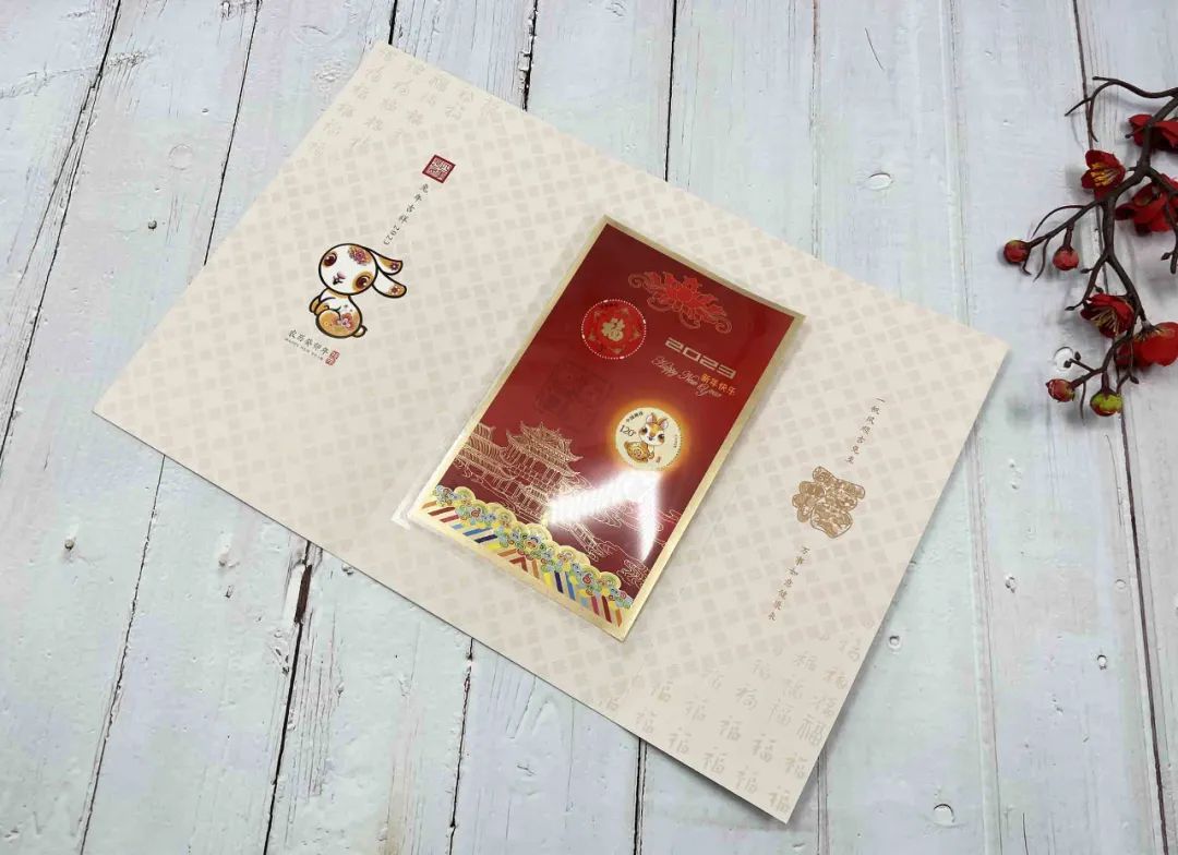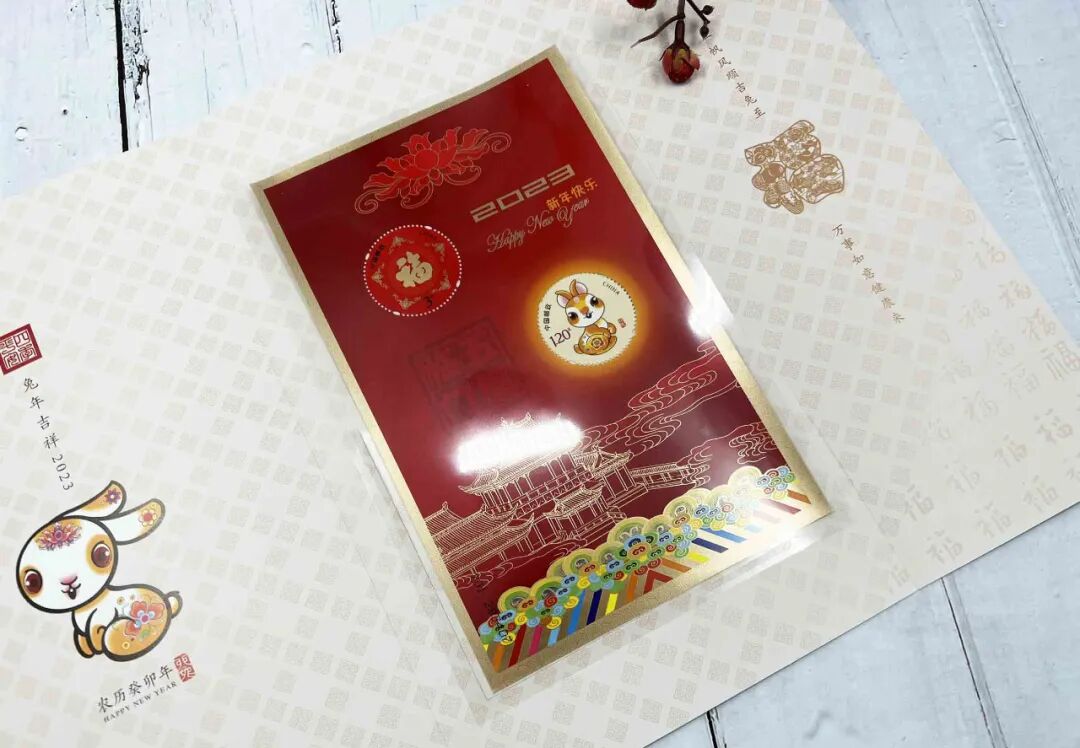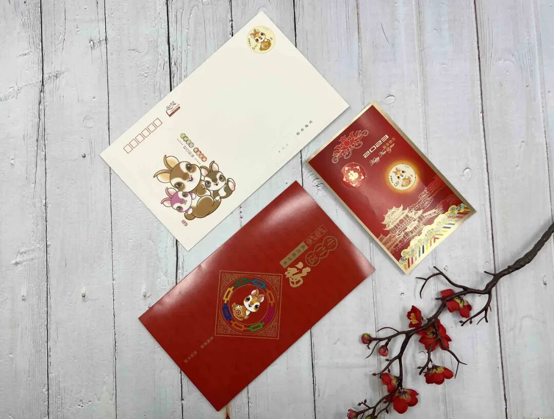 在采访黄永玉老先生的时候,他豁达地说:“这个兔子画出来就是祝贺新年而已。”只有老爷子才能看透本质,确实,生肖邮票的本质是为了庆祝新年而生的。兔作为生肖之一,其乖巧圆润而被寄予活力、希望。《拟天问》就有云:「月中何有?白兔捣药,兴福降祉。」玉兔捣药安康、拢月而眠的想象,是先人对“长生不老”的寄望,也代表我们心底世事如拥抱圆月,平安吉祥的期盼。“同圆共生”背景以玉兔捣药为主,尤其符合当代人对健康的渴盼。在敦煌壁画的世界里,“三兔共耳”的图案可谓精妙不已,三兔即代表了“三世佛”,三世姻缘,循环不息。《癸卯年》生肖邮票灵感借鉴于敦煌壁画,玉兔呈祥,饱着吉祥含蕴,更承载着步步高升的美好祝福,愿你日日平安,福运绵长。把这版饱含99岁可爱老头祝福的藏品带回家,送给家中父母、长辈,愿他们如黄永玉般健康长寿,生活开心。“兔报新春”邮票,由邮票设计大师吴冠英老师设计完成;“五福具臻”邮票采用五只飞舞的蝙蝠围绕汉字“福”的造型,红与金的搭配,春节氛围浓郁。小全张的设计创意则是采用神话传说中的广寒宫,皓月当空,祥云如梦,宛如仙境。上方点缀宝相花纹饰,下方配以海水江崖纹,整体给人一种富贵平安,吉祥如意之感。赠送的贺卡采用红金配色,并衬以传统吉祥纹样,中式风格浓郁,喜庆而典雅。封面正中的玉兔形象同邮票相呼应,带着满满的新春吉祥寓意。另外赠送的2023年兔年首日封,是两只小兔挤在兔妈妈身边的温馨场景,它们乖巧喜人,目光灼灼,寄托了平安顺遂、祥和富足的美好愿望。我们给大家争取到新年福利价,一套《癸卯年》生肖邮票(2张大版张)+2023兔年新年贺卡+小全张+兔年首日封,仅500名额,限量发行!把这一套福兔带回家,收藏的坐等升值,送人的送出吉祥和满满心意,入手绝对不亏!![]()