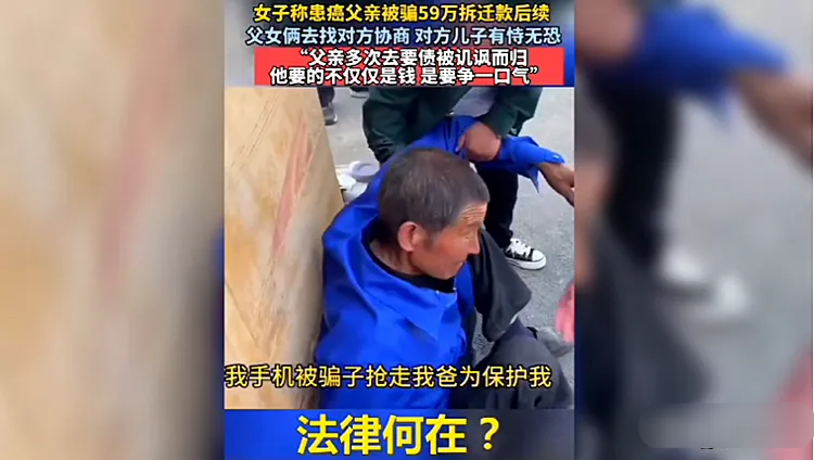得知父亲被骗后,夏夏第一时间辞去了工作,回到家里,帮父亲讨要被骗去的59万拆迁款!