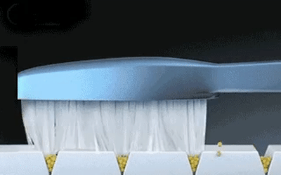 而刷毛更是采用了65孔高密植毛,难以想象,这小小的刷头上,竟然有65束刷毛,每束又有上百根。密度是普通牙刷的2倍还多。
