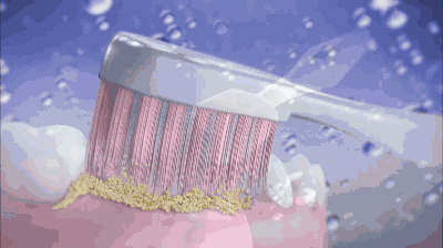 在宽头和浓密而坚韧的刷毛加持下,口腔里各种死角、缝隙很轻松就被清理得干干净净,就连牙龈里隐藏的牙垢都不放过。