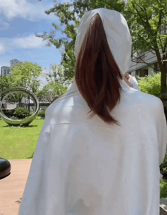 3、帽子采用拉链隐形发洞开口,露出马尾不拘束,时尚百搭,显高显瘦穿出高级氛围感。