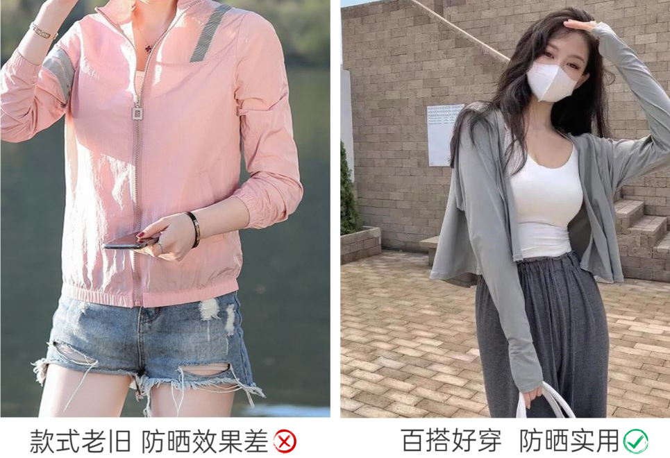1、 45年国民服装品牌 冰感防晒面料,UPF50+防晒能力