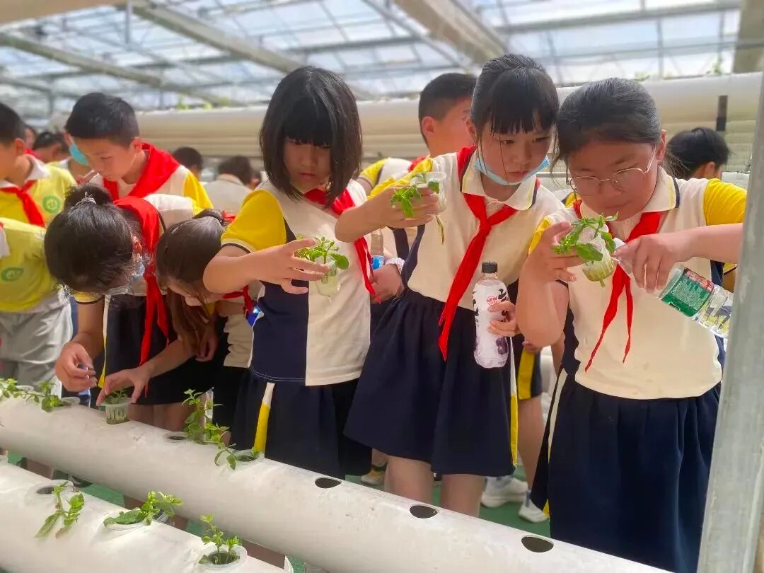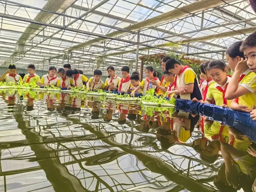 水培植物有哪些?“鱼植共生系统”是什么?江苏省仪征市张集小学的队员们来到扬州市天乐湖劳动教育实践基地一探究竟。