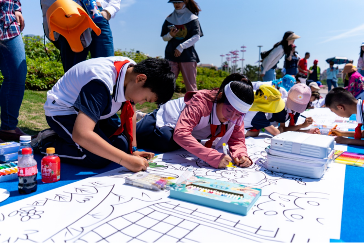 山东省青岛市崂山区第二实验小学的队员们开展了“建设人与自然和谐共生的现代化”主题实践活动。大家用五彩斑斓的画笔在长卷上绘制城市发展、“绿水青山”,画出各自心目中“地球妈妈”的美丽模样……一幅幅美丽的画卷在一双双小手中铺展开来,画面中寄托了队员们对共筑美丽家园的美好愿望,蕴含了对地球母亲深深的热爱。