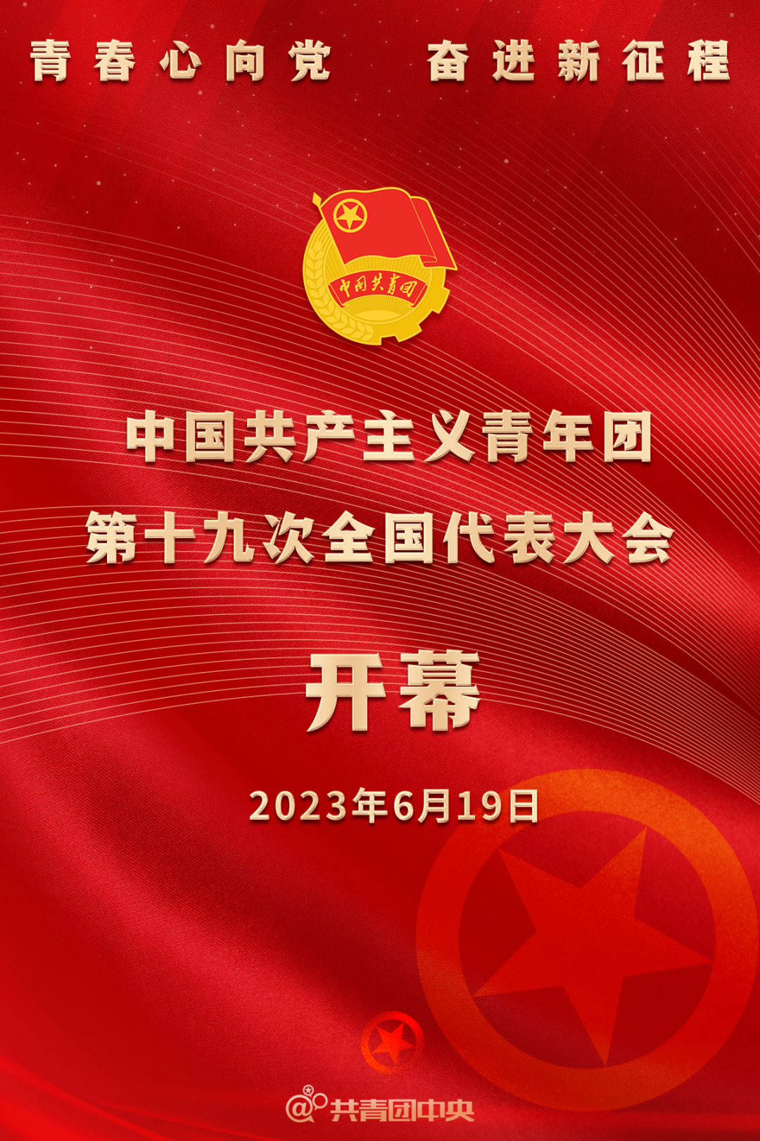 新华社北京6月19日电 中国共产主义青年团第十九次全国代表大会19日上午在人民大会堂开幕。习近平、赵乐际、王沪宁、丁薛祥、李希等党和国家领导人到会祝贺,蔡奇代表党中央致词。人民大会堂大礼堂灯光璀璨,气氛热烈。主席台上方悬挂着“中国共产主义青年团第十九次全国代表大会”会标,后幕正中是熠熠生辉的团徽,10面鲜艳的红旗分列两侧。二楼眺台悬挂标语:“以习近平新时代中国特色社会主义思想为指导,全面贯彻党的二十大精神,动员引领广大青年为全面建设社会主义现代化国家、全面推进中华民族伟大复兴团结奋斗!”近1500名来自全国各地的团十九大代表,肩负着7300多万共青团员的重托出席大会。上午10时,中共中央总书记、国家主席、中央军委主席习近平等步入会场,全场响起热烈掌声。大会主席团常务委员会委员阿东宣布大会开幕。全体起立,高唱国歌、团歌。随后,8名少先队员向大会献词。他们用响亮的声音表达了从小听党话、跟党走,立志为党成才、为国奉献的坚定决心。蔡奇代表党中央发表了题为《在强国建设民族复兴新征程上书写壮丽青春篇章》的致词。蔡奇向大会召开表示热烈的祝贺,向全国各族青年、全体共青团员、广大团干部和青少年工作者致以诚挚的问候。蔡奇在致词中说,在党中央坚强领导下,团十八大以来,共青团坚持以习近平新时代中国特色社会主义思想为指导,认真贯彻习近平总书记关于青年工作的重要思想,全面从严管团治团,团的政治性、先进性、群众性不断增强,引领力、组织力、服务力不断提升。广大团员和青年听从党和人民的召唤,用青春的激情奏响了“清澈的爱、只为中国”的时代强音,用青春的行动践行了“请党放心、强国有我”的铮铮誓言。蔡奇表示,中国青年和中国青年运动,从来都是在担当时代使命中彰显青春的使命,在推动时代进步中实现自身的进步。全面建成社会主义现代化强国、实现第二个百年奋斗目标,以中国式现代化全面推进中华民族伟大复兴,是党的中心任务,也是新时代中国青年运动和青年工作的鲜明主题。广大青年要牢记习近平总书记的谆谆教导,立志做有理想、敢担当、能吃苦、肯奋斗的新时代好青年,为强国建设、民族复兴挺膺担当,继续创造无愧于时代、无愧于人民、无愧于历史的新的青春业绩。共青团要坚持不懈用习近平新时代中国特色社会主义思想凝心铸魂,时刻对标对表党中央决策部署谋划和推动工作,更好团结带领广大青年奋进新征程、建功新时代,严于管团治团,在全方位、高标准锻造中焕发共青团昂扬向上的精神风貌,奋力书写新时代中国青年运动和青年工作的壮丽篇章。中华全国总工会党组书记、书记处第一书记徐留平代表中华全国总工会、中华全国妇女联合会、中国文学艺术界联合会、中国作家协会、中国科学技术协会、中华全国归国华侨联合会、中华全国台湾同胞联谊会、中国残疾人联合会向大会致贺词。贺词指出,各群团组织要继续发扬优良传统,充分发挥各自优势,带领所联系群众更加信心满怀、更加斗志昂扬地紧跟党走在强国建设、民族复兴的大路上,共同谱写新时代党的群团工作新篇章。阿东代表共青团第十八届中央委员会作了题为《在习近平新时代中国特色社会主义思想指引下 动员引领广大青年为全面建设社会主义现代化国家而团结奋斗》的报告。报告分为10个部分:在革命性磨砺中奋进的中国共青团;新时代中国青年的使命担当;用习近平新时代中国特色社会主义思想统领共青团工作;大力加强青年思想政治引领;组织青年争当中国式现代化建设的生力军;竭诚服务青年成长发展;巩固和扩大青年爱国统一战线;汇聚起构建人类命运共同体的青春力量;纵深推进共青团改革;坚定不移全面从严治团。中共中央书记处书记,全国人大常委会、国务院、全国政协、中央军委有关领导同志出席会议。中央和国家机关有关部门、各人民团体、北京市负责同志,部分在京离退休的曾在团中央书记处工作的老同志,首都各族各界团员青年代表等参加开幕会。![]()
