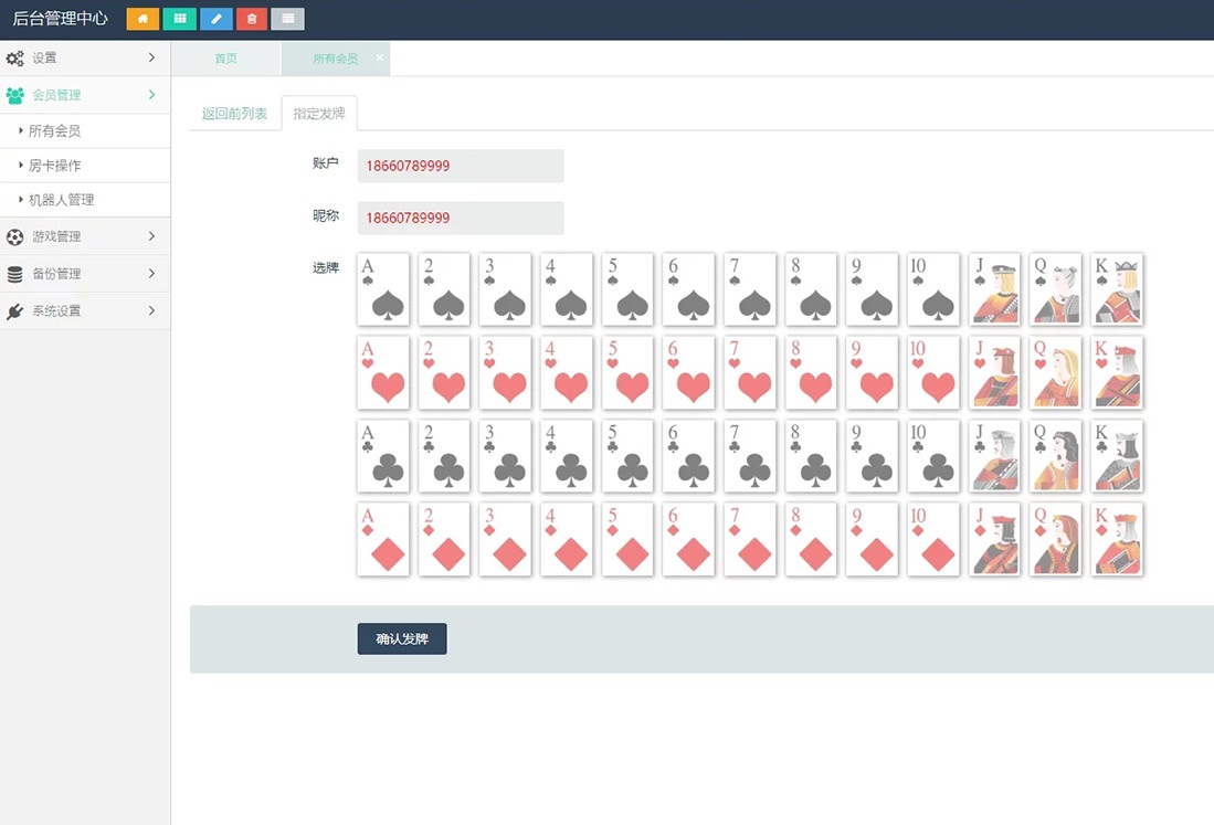 小苏大联盟是运营级别棋牌源码平台,正版无授权,平台带有俱乐部,房卡与积分玩法,功能方面特别强大,支持开房记录、战绩、代理,游戏控制会员可以支持胜率、以及透视控制,准确的号牌率、指定发牌。