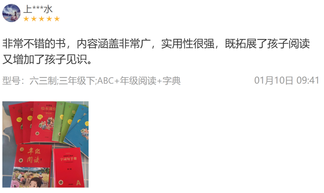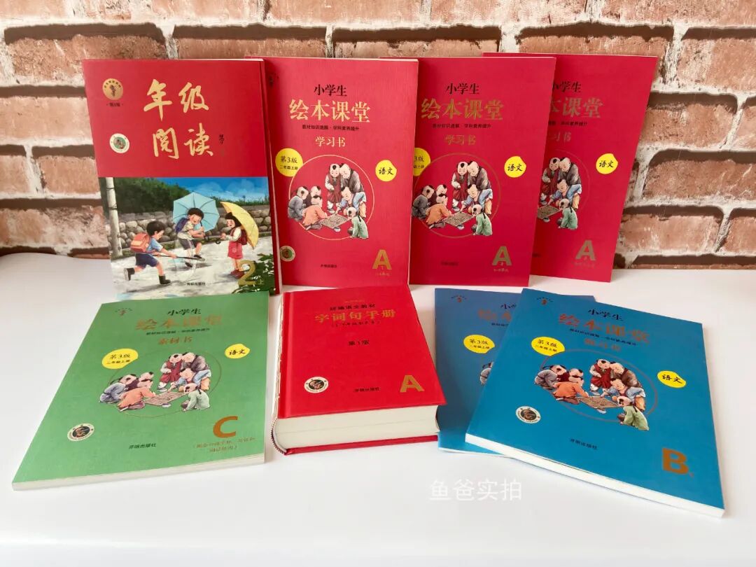 注意:A是《学习书》,B是《练习书》,C是《素材书》,数学是同系列数学科目教辅书,字典是《字词句手册》。字典整个小学阶段买一本就够,别买重。