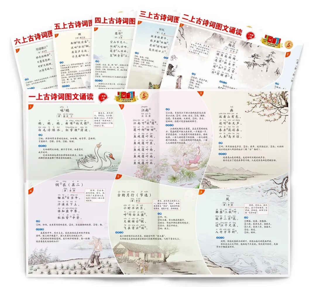 新增的古诗词挂图,则是把每个年级需要掌握的古诗词都给总结出来了,图解古诗、情景绘制,帮孩子高效学习。