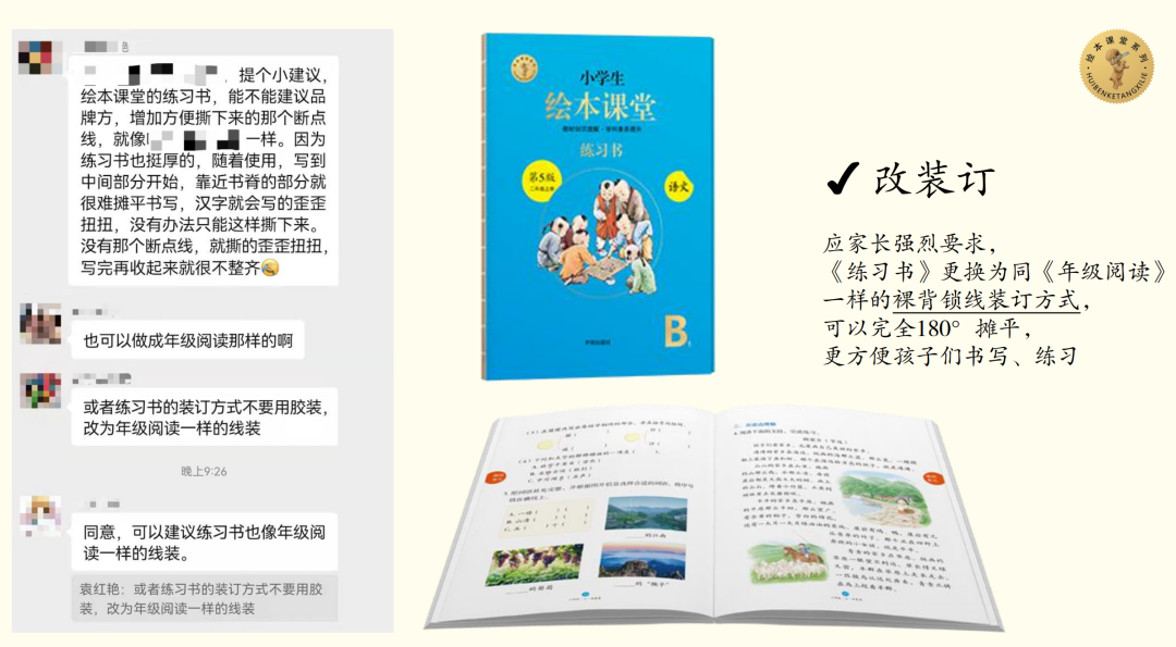 其实,这是出版社特有的设计,《绘本课堂》中年级阅读采用的裸背锁线胶订,这是古书籍才会使用的装订方式,既能保证读书时,每一页都能延展开,又带有浓浓的复古风,我个人还挺喜欢的。