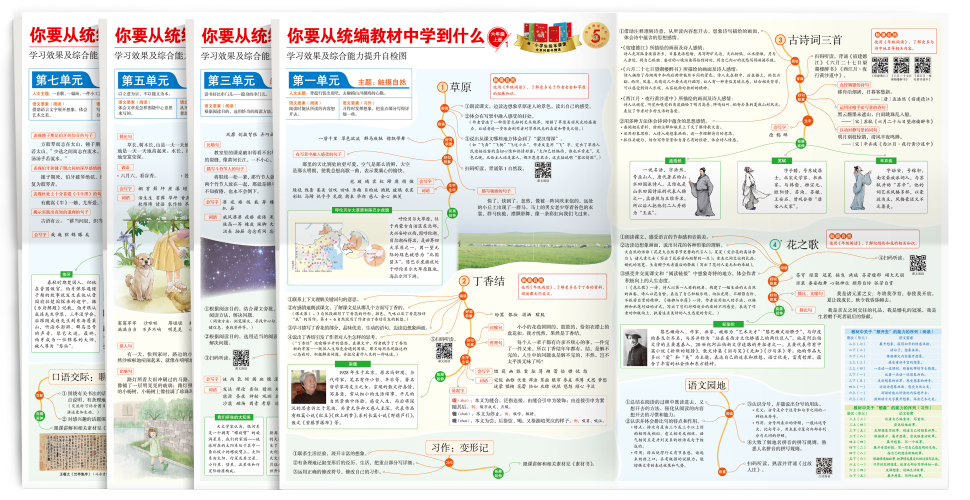《你要从统编教材中学到什么》每个年级一大张,把每一单元教材要求掌握的知识和能力全部提取出来,帮助孩子提前把握重点、检测知识漏洞。