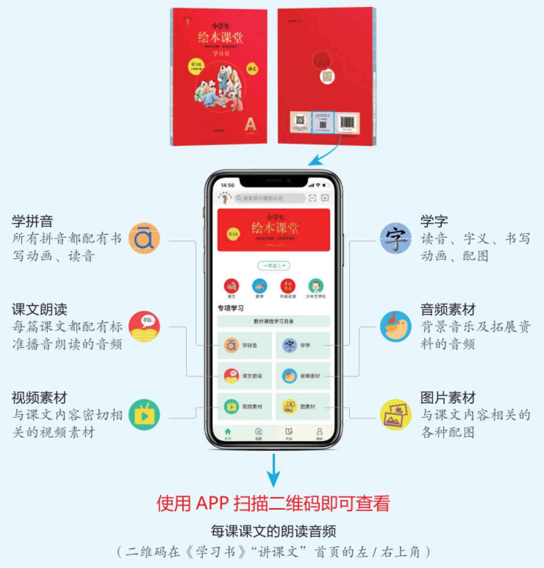 这里强调一点,《绘本课堂》为孩子们专门配有强大的资源宝库——“绘本课堂APP”,里面有视频、音频、图片等让学习更简单的丰富资源。