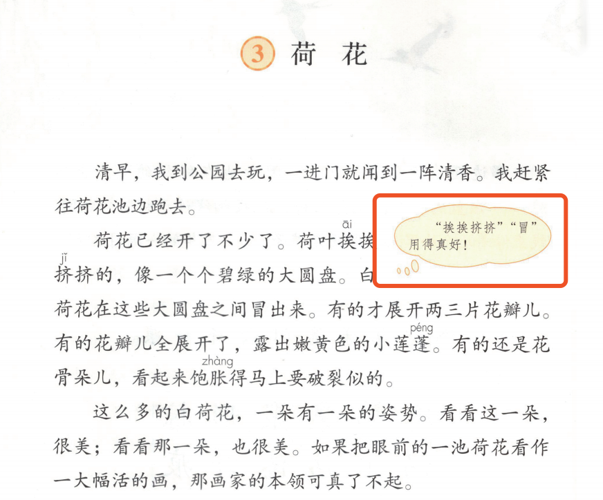 接着到课堂学习,为了保证孩子能集中精力,跟随老师听讲时还是建议用教材,有不懂的及时标注。比如“挨挨挤挤”是什么样的?