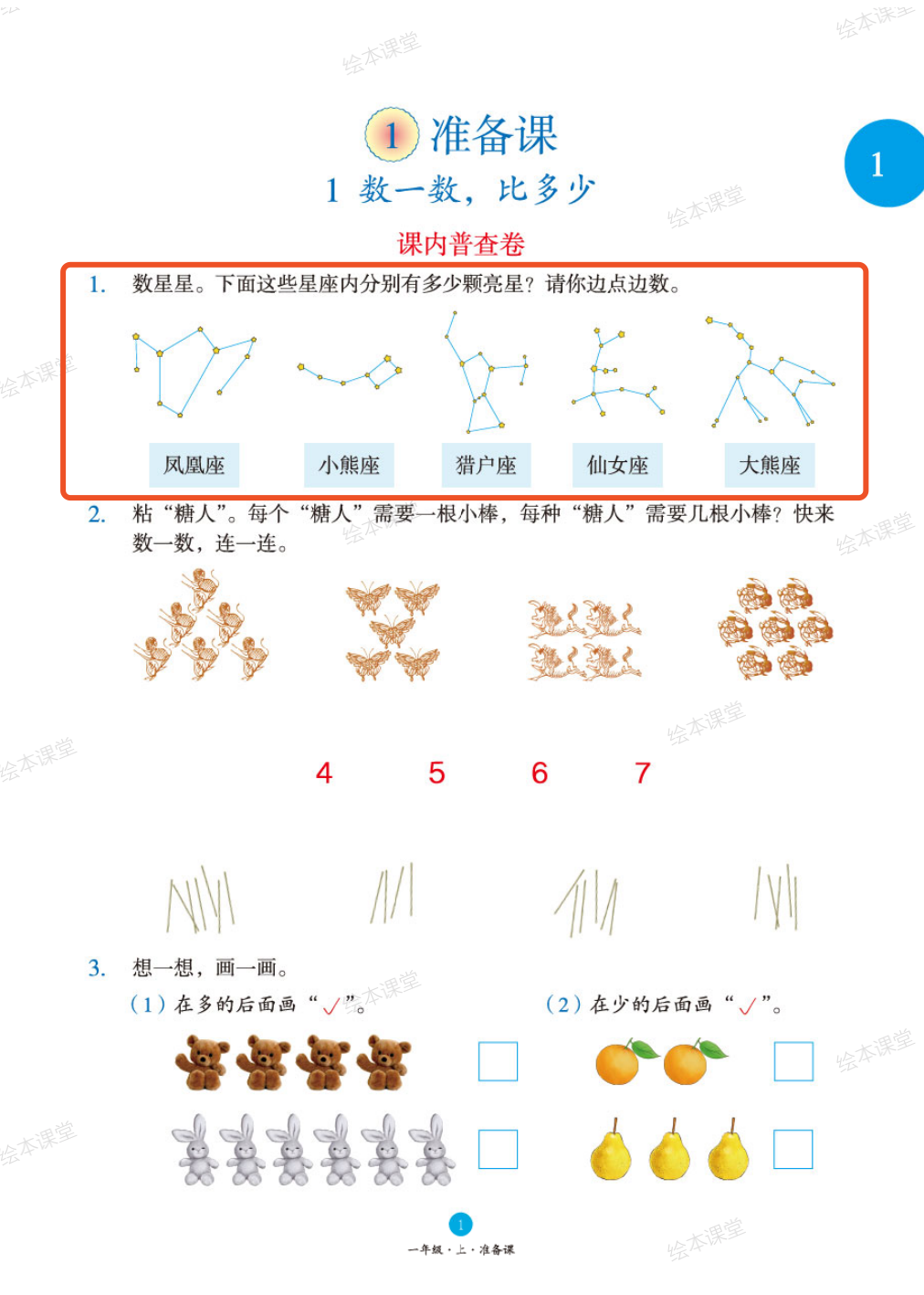 一年级准备课数一数,你在数火柴、豆子,他已经开始数星星。